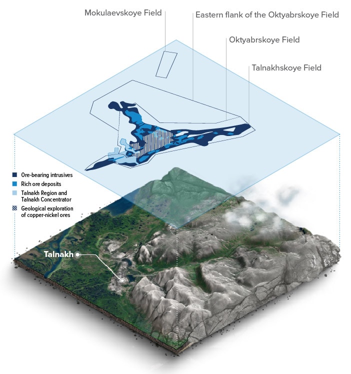 The field is located 10 km north and north-west of the industrial facilities of Oktyabrsky and Taimyrsky mines.