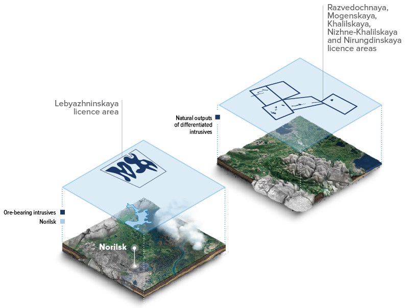 In 2014, the Company obtained subsoil exploration licences for prospecting and appraisal of copper-nickel sulphide ore deposits in the Lebyazhninskaya, Razvedochnaya, Mogenskaya, Khalilskaya, Nizhne-Khalilskaya and Nirungdinskaya Areas of the Taimyrsky Dolgano-Nenetsky Municipal District (Krasnoyarsk Territory). The respective prospecting projects were reviewed and approved by the authorised expert bodies, with prospecting currently in progress, including exploration drilling to confirm anomalies identified earlier.