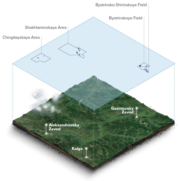 The Bystrinsko-Shirinskoye Field is islocated 24 km south-east of Gazimursky Zavod lying in immediate adjacency to the Bystrinskoye Field.